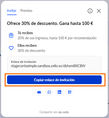 Puedes ganar dinero por invitar a tus contactos a gestionar su negocio con Contasimple. Cualquier usuario puede compartir su enlace personal y recibir hasta 100 € en efectivo por cada persona que se registre y contrate un plan de pago.
