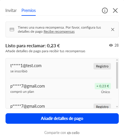 Cualquier persona que se registre a través de tu enlace quedará vinculada a tu cuenta y empezarás a generar ingresos en cuanto realicen su primera suscripción.