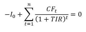 La fórmula del TIR busca encontrar una incógnita muy específica en una ecuación de actualización. Matemáticamente, es el valor que satisface la siguiente igualdad: